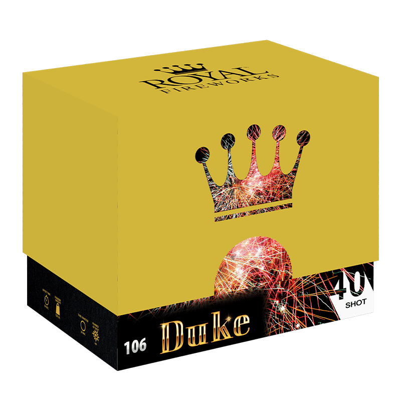 40 skuds compound batteri der opskyder 40 luftbomber i 30mm. Bombetterne opskydes i vifter, som spreder sig flot på himlen i farverne rød, blå, grøn og guld.